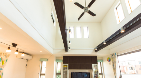 外の気温が伝わりやすい「マンションの最上階住戸」や「戸建て2階の部屋」、太陽の光がよくあたる「西向き窓」や「ハイサッシ」のある部屋、より多くの空気を冷やす・暖める必要がある「高天井」「吹き抜け」の部屋、夏場に火を使った時リビングダイニングまで暑くなりやすいオープンキッチンやLDKの配置が直線ではないためエアコンの風が届きにくいL字型の場合など、いずれも能力にゆとりあるエアコンもご考慮ください。