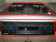 コンロ下ガス配管接続部分のお写真